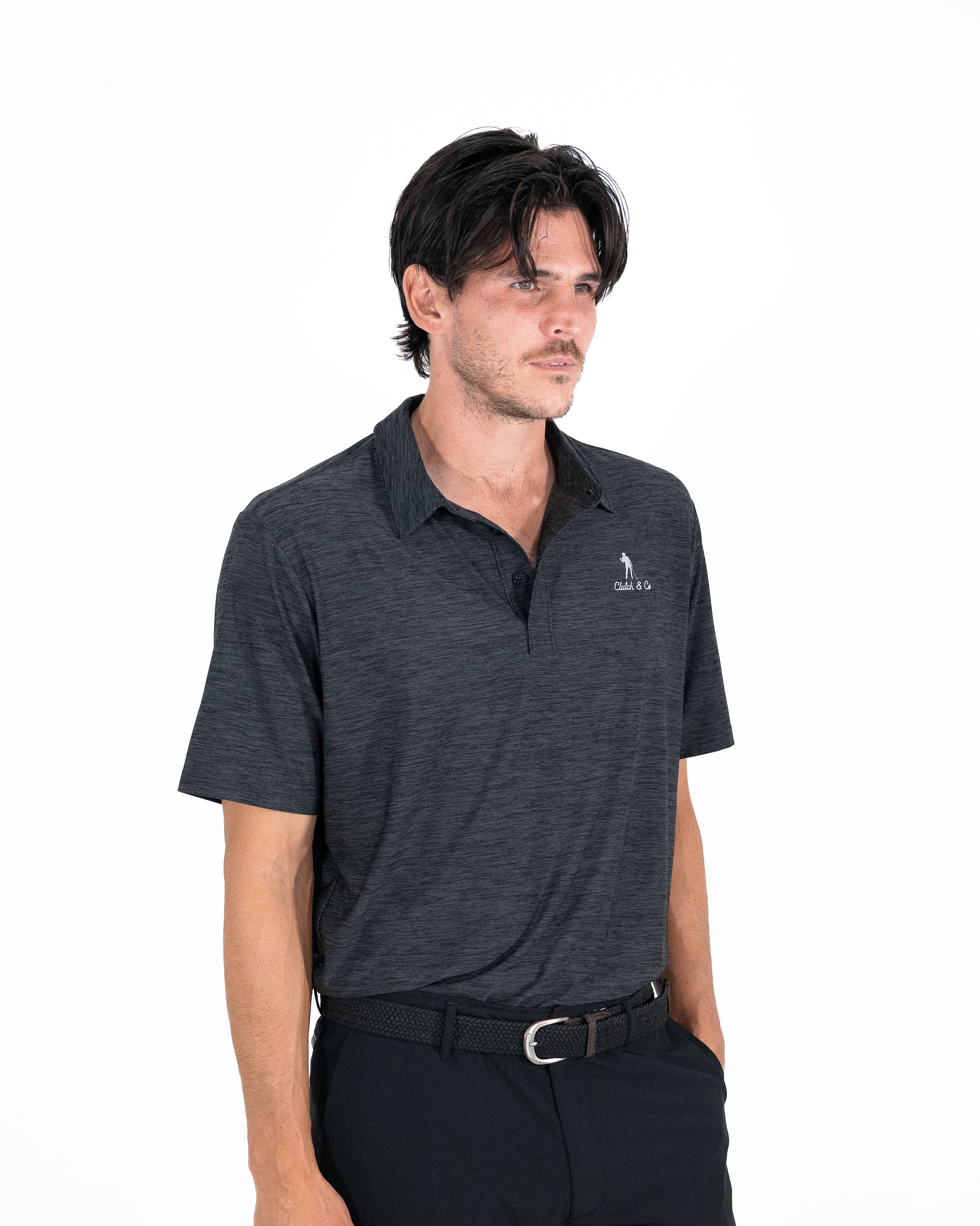 - Lightweight melange performance fabric (170gsm) that feels soft, breathable, and built for all conditions